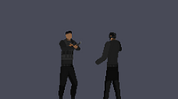 Trying out a different angle for the sprites (the right one). I believe I should rotate the head towards the left more and spread the legs apart more as well. I'll work on changing the angle for the l...