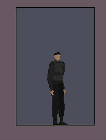 I'm looking towards a military style of the sort. At the moment, it is rougher than expected but it will be better to have something down rather than continuing developing with a block. Colour/shading will be the biggest obstacle to best showcase the parts of the character, but I will leave it here to progress other parts of the game.
